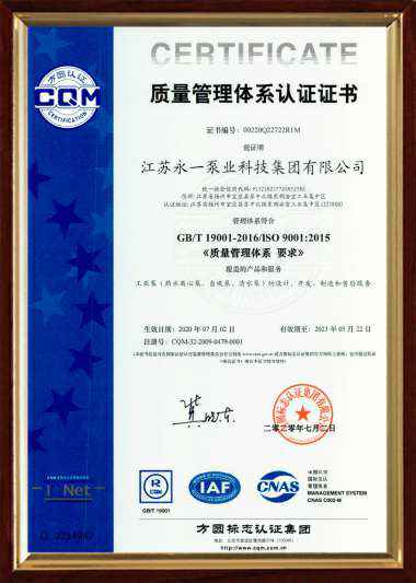 质量认证管理体系证书中文
